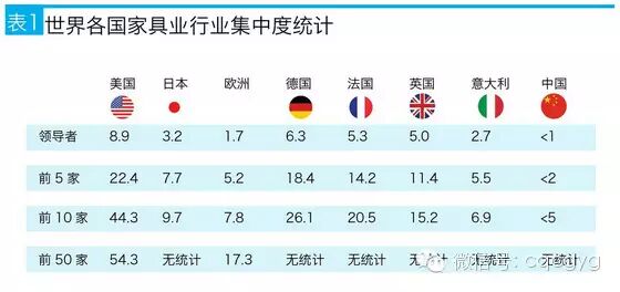 表1为世界各国或地区的家具行业集中度统计。各国家具行业内部的集中度与其工业发达水平及社会文化特点相关,日本文化与市场细分是其集中度低于其它工业化水平高的国家的根本原因。意大利是个设计和创新导向的国家,其集中度低是必然表现。美国的经济基础、短暂历史文化、社会消费特点与产业结构是其集中度远远高于其它发达经济体的原因所在。中国尚未定型,无论最终怎样,目前的低集中度定会有所提升,行业正在面临洗牌和重组,但无论怎么提升都很难颠覆这一基本规律。那些唱衰和无视中小型企业价值的观点都是无知的。