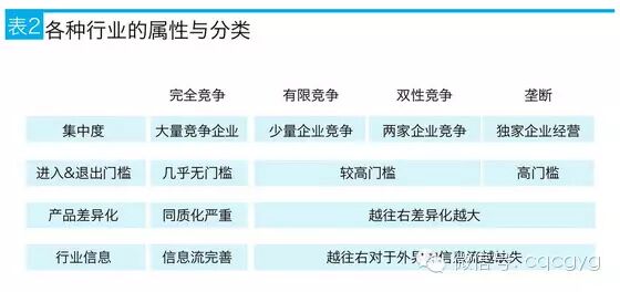 对于完全竞争行业而言,不仅竞争企业众多,而且进入与退出的门槛低、产品同质化现象严重,还有产业链信息完善,企业很难长时间持有不被别人模仿的核心技术,所以是典型的进入容易做好难的行业。表2是各种行业的属性与分类。