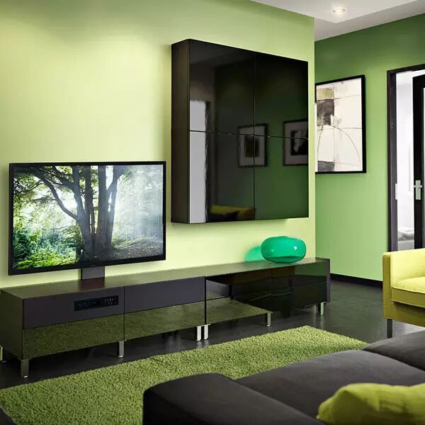 地板虽然选择了暗沉的灰黑色,但是墙身却大胆的使用了草绿色,还聪明的铺上绿地毯,有那么一种错觉在森林里。