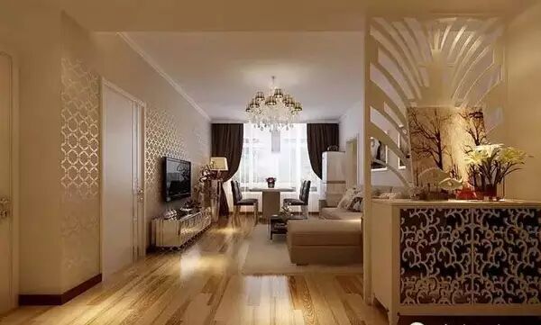 户型小,采光要好,搭配光面淡黄木地板,散射更显空间大。
