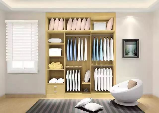 1、根据空间远近来设计,将更换频繁的衣物放置在取物方便的地方。