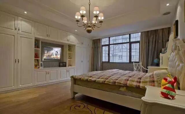 在床上想看电视,睡觉时又不想被反光照到,来!内嵌电视柜衣柜组合满足你!