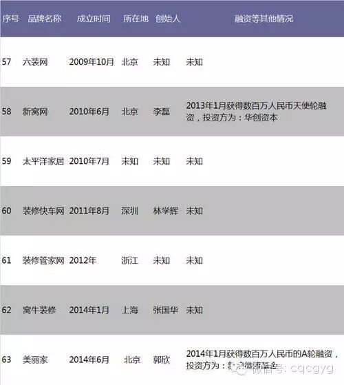 本次盘点共涉及63家中国家居、家装O2O创业企业,品途网将它们分为六个方向,分别为:家居电商平台、家装综合服务平台、互联网家装企业、家居家装设计企业、以工长为主导的装修平台、提供家装信息服务的企业。