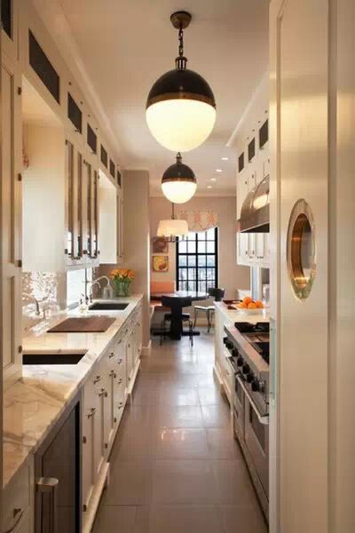 PS:保持厨房两端带来更多的自然光,还可以射入到家里的其他空间。另一个技巧就是水槽在一侧、炉灶在一侧,减少混乱。