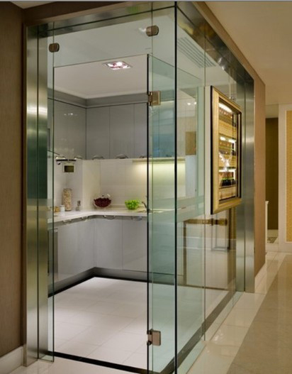 在小户型的设计过程中,设计师通常运用简洁的手法,同时选择一些展示效果较强的材质和颜色,使本来面积不大的空间不显得拥挤。首选材料是玻璃,这是因为玻璃材料的展示效果具有通透感,特别是吊柜中玻璃边框的运用,不会让人感到压抑。