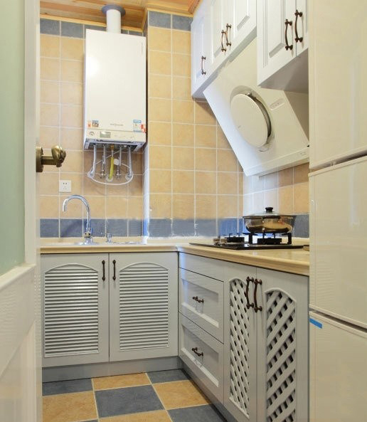 尽管是小厨房,但应有的功能一个也不能少,特别是许多细微之处。比如小厨房一般较少使用大抽屉,所以柜门的使用次数就会增加,每天都要多次重复开合,此时,铰链的作用就突显出来了,如果在柜门板上安装上塑料预留件,确保连接件与柜体间有足够大的连接强度,使角链不会松动,不会脱落。