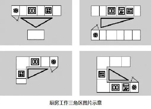 三个工作区:操作台、灶台、水槽所谓厨房工作三角区指的是:厨房的烹饪区、洗涤区、和...