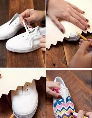 纸板、彩色笔就能变出斑斓的几何图案潮鞋