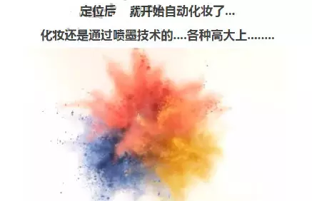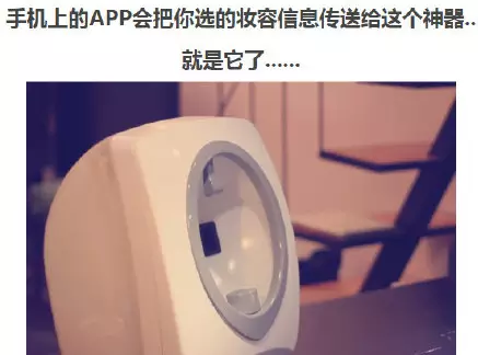 最近国外出了个碉堡天的化妆神器......只要手指点一点选择你要的妆容,30秒......就能帮你自动化好妆了......综合了各种最顶尖的技术,自动扫描定位脸部,通过3D喷墨技术来上妆......原来现在的科技技术已经先进到如此丧心病狂的地步了