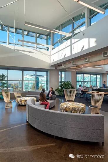 来几场纸牌游戏也是不错的放松选择,这也是企业精神文化的一种。当然,对于这类休闲区域,也同样需要有有安全感、私密性、和公共性。玻璃墙壁既维护了游戏区的相对安静的环境,又具备开放的视野,与外界保持公共关系。