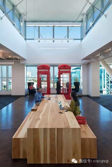 创意的公司当然离不开创意的点子。设计公司将伦敦街头的经典电话亭搬进了公司一楼,同是与外界通讯,却可以让来往的客户获得不同的体验;更同时成为大厅内的一道亮丽的风景。