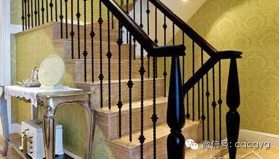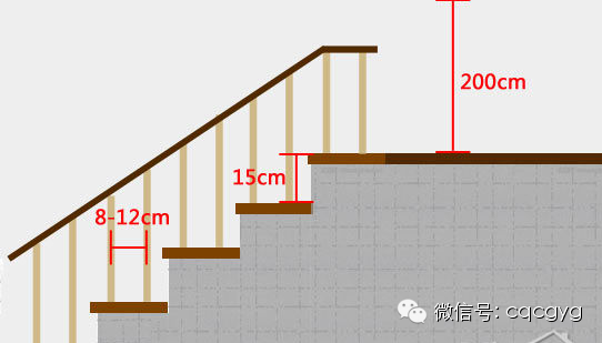 栏杆距离:楼梯扶手下栏杆的距离也有一定要求,两根栏杆的中心距离以8cm宽为宜,不能大于12.5cm,否则儿童容易把头伸出栏杆,造成危险。
