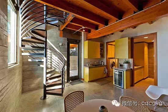 旋转楼梯:选装楼梯即环绕着某一中心轴旋转而上的楼梯,这种楼梯占地面积少,而且不需要依靠墙面,有动态美感,但是安全性较差,有老人和小孩的家庭需要慎用。
