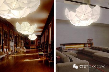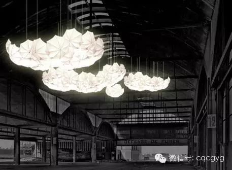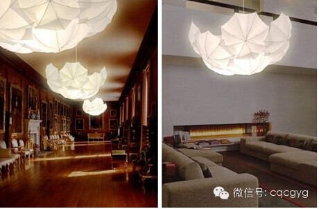 把吊灯做成倒置的雨伞,平淡的东西同样可以很高雅