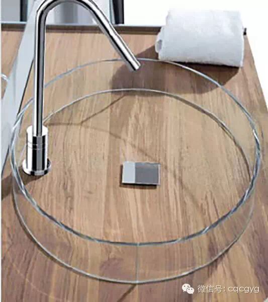 优雅的透明圆形洗手盆,装满水变成可以航行纸船的小湖。