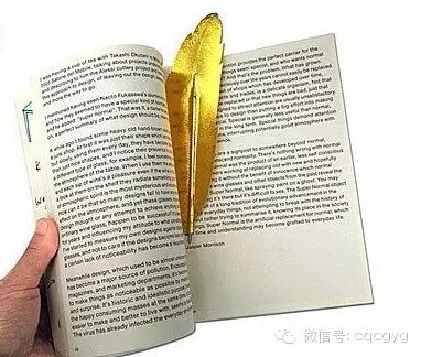 韩国的nothing设计工作室设计了一款现代鹅毛笔,纸质的笔身包裹一根圆珠笔芯,超薄的设计使得它既是笔,又是一个轻便的书签,有白色/金色两个版本。