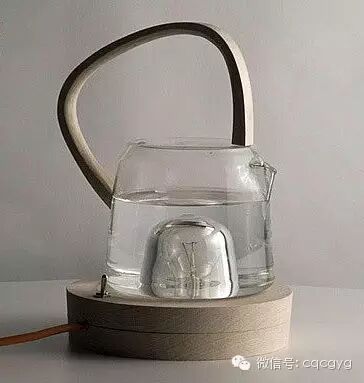 设计师巧妙地制作了一个水壶状的灯罩,100W的灯泡可以将壶中的水加热到90°,而加热的过程却不影响它作为灯泡继续发光。这之间的能量转换、能量消耗且不说了,如果冬天的时候泡上一壶茶,放在这灯泡之上用于保温,想来还是不错的。
