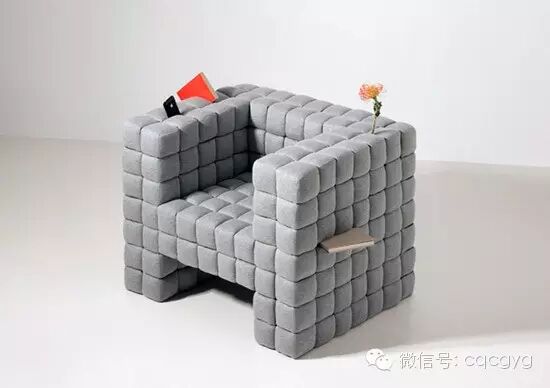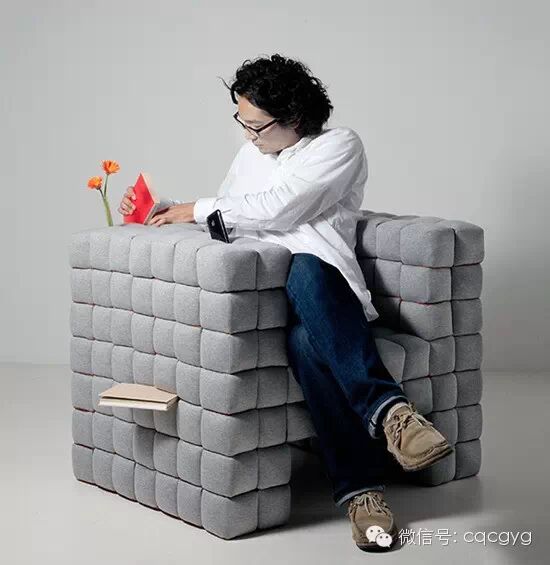 【我们经常会在不经意的时候从沙发垫的缝隙里翻出几枚硬币或是一张卡片或是别的小物件,不知道什么时候它们从口袋里滑落出来,藏进缝隙里。受到这个生活场景的启发,日本设计师motogi设计了一只满是缝隙的沙发,确切来说这沙发就像是用一个个方块堆砌出来的,你可以随手放置任何小物件到这些缝隙里,只要不是体积庞大,它几乎无所不容。】