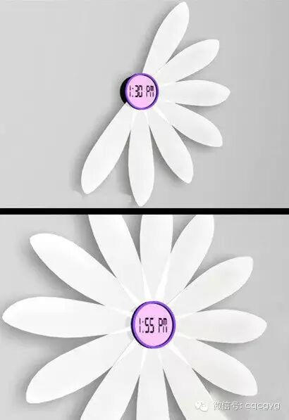 【开花的钟】一个会开花的钟,它的特别之处在于每隔5分钟就会开出一片花瓣,等到了1小时,12片花瓣就构成了一个花朵。如此反复,花开花谢。很有爱的设计。