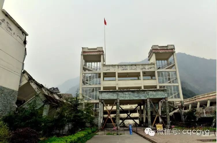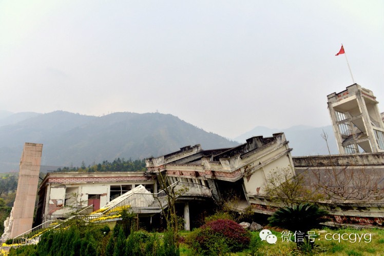 漩口中学作为地震遗址保存下来,供外地来的客人在此追思。