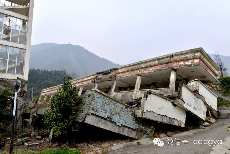 p8、教学楼坍塌的样子,那些斜插在墙梁上的水泥柱子是修葺遗址时打上去的。防止彻底毁损