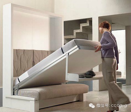 当你家里的空间实在是比较小,或者是你不想你的床占据大量空间的时候,那么把床收起到墙上是一个不错的选择。