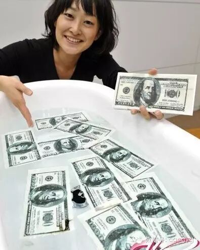 这是谁这么奢侈的把钞票浸在浴缸里?仔细一看,原来是“山寨”千元大钞的肥皂啊。