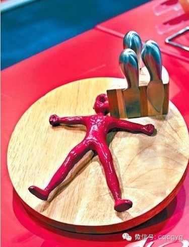 爱设计带有玩味的香港设计公司Urban Trend,一向不甘平凡,连简单的开瓶器都要用单车链做手柄,今次展出的新家品,玩吓人的外形,其设计意念原来是来自马戏团的飞刀环节,看见鲜红色的人形公仔,不是大字形躺在刀架上,便是卧在砧板上,刀架更可以360度转动,不过因为运用磁力原理,不怕菜刀会乱飞。
