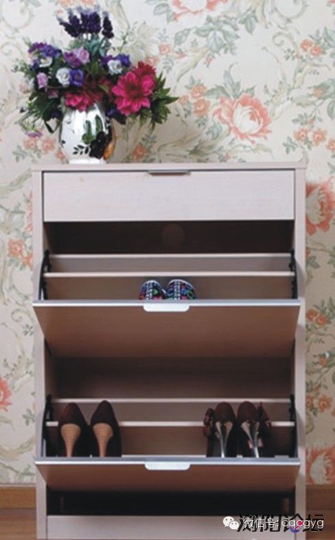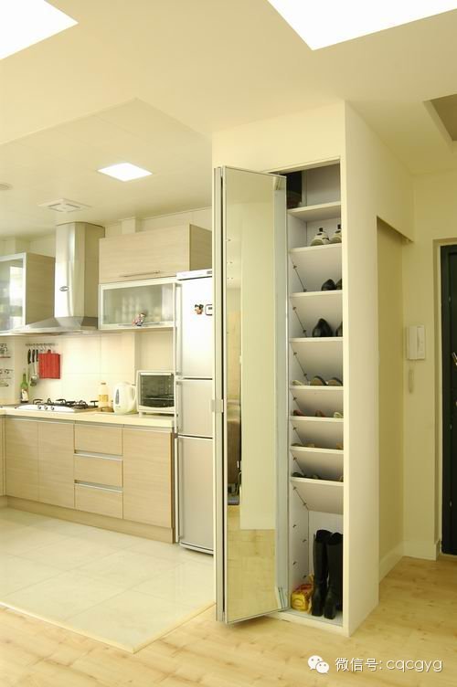空间有限可在鞋柜设计上动脑筋,比如这样