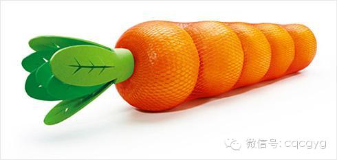 好好当你的橘子,装什么胡萝卜!马来西亚广告公司Alpha 245为台湾公司设计的一个包装(Bigger Harvest),橘子被装进了网兜,开口位置点缀几片嫩绿的叶子,兼做装饰和提手。大丰收啦!快去收萝卜!