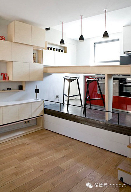 在每坪数房价越来越高的现在,土地空间就是金钱,如何在有限空间发挥完善功能的居家装潢设计,是许多人在做室内设计时所注重的重点,尤其在部分都市区,甚至出现了坪数极小的微型公寓,在没有隔间又极狭小的空间配置里,光是床铺就占了好大位置,想要去拥有浴厕、沙发、厨房跟吧台等家具设备,更是一件相当困难的事,但是位在巴黎一处只有5坪左右(16m2)的公寓做到了!