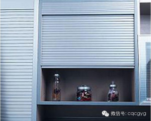 在厨房作业时,经常需要一些物品随时可供取用。小厨房有限的空间,决定了只能将这些物品放入橱柜内部,取用时非常麻烦,在做橱柜时,留出一个简单空位做个卷帘,里面可以摆放一些常用物品,用完后放回原位,这样节省空间。