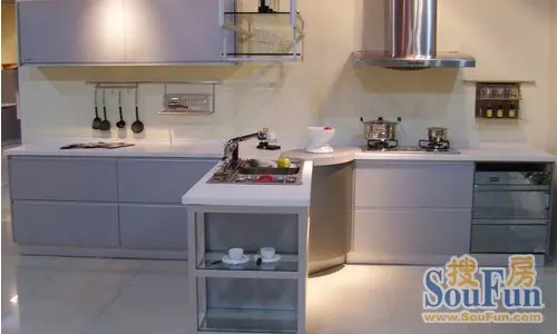 厨房的功能决定了它是居家环境最易“脏、乱、差”的地方。如何让厨房美观整洁,是厨房装修的除功能便捷以外的另一重要目的。要充分利用空间,利用台柜、吊柜等,给锅、碗、瓢、盆找一个相对妥善的收放空间。厨房里的矮柜最好做成抽屉,推拉式方便取放,视觉也较好。而吊柜一般做成30到40厘米宽的多层格子。