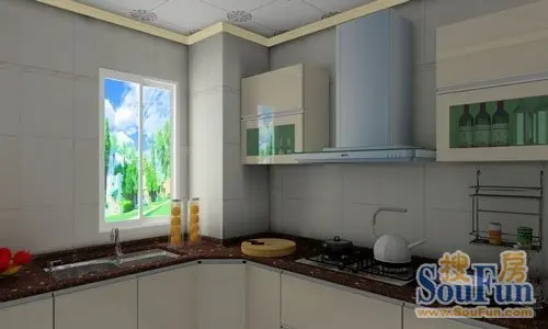 厨房的使用面积要适中,过大无疑浪费,而过小则拥挤不堪,合理面积应一般为为 10平方米左右。还要保证厨房空间的自然采光和合理通风。厨房若面积够大,可放置小型餐桌,这样就能兼作饭厅使用,无须另觅空间作为饭厅,餐桌下可放置地毯以作分隔空间之用。厨房面积若是小,则应该注意收纳。