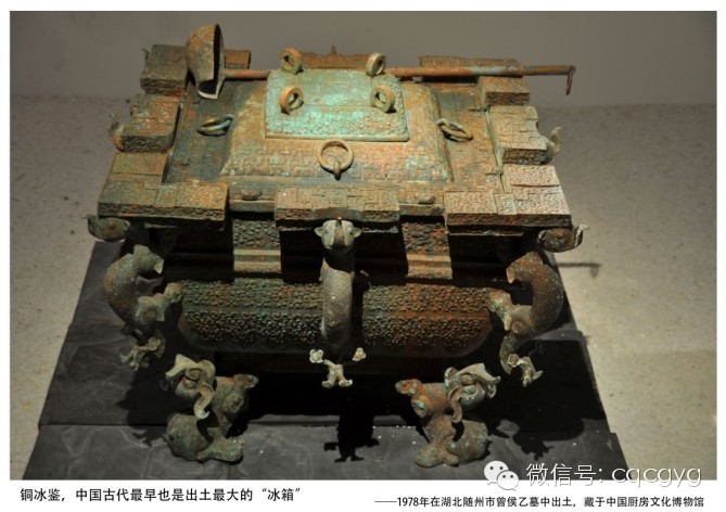 将上面的盖子拿开,俯视它的形状如同一个“回”字。这好比今天的暖水壶,有个外壳,还有个内胆。不同的是暖水壶的外壳和内胆之间距离很小,而这冰鉴的外壳和方壶之间则是个很大的空间。这个空间,夏日置冰,冬日置碳,具有冰镇、加温双重功效。