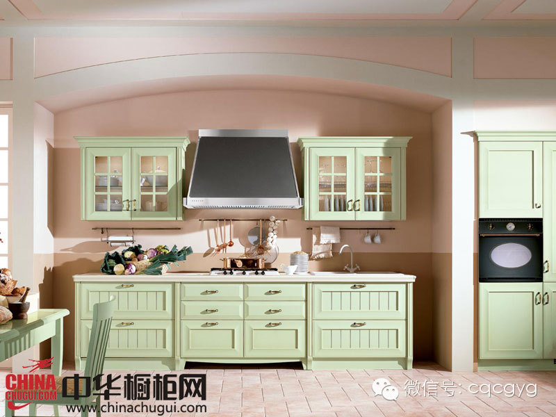 天然清新田园风格橱柜 增加厨房的时尚感:实木橱柜淡雅清新又带点自然风,最适合田园风格的厨房(厨房装修效果图)布置。实木橱柜以其经久耐用、风格高雅、健康环保而受到了消费者的青睐。在运用木材这种大自然原装的材质来装修家时,绿色的设计合着自然的拍子,适时而动,伺机而动,方能收到浑然天成的效果。