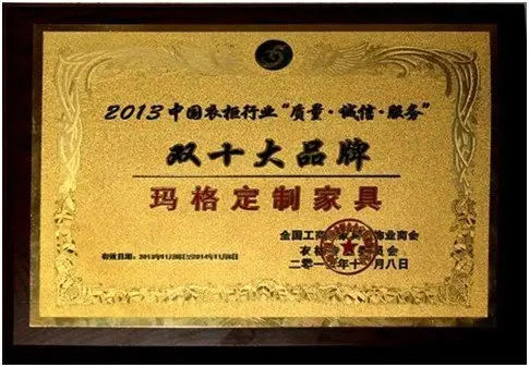 中国2013衣柜行业年会上,玛格定制家具获由全国工商联家具装饰业商会衣柜专委会颁发的衣柜十大品牌和十强企业的品牌殊荣,这两大荣誉为玛格定制家具已成功跻身中国衣柜行业十大品牌之列进行了强有力的注解。