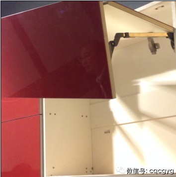 巡检小组走进某展厅,这家品牌在国内拥有不小的名气。但当专家组成员在检查其板材、五金应用状况时,惊讶地发现,吊柜中连接上壁及门板的铰链已经脱落,倘若消费者不小心大力揭开该门板,门板有可能掉下来,极为危险。专家组同时解析力吊柜跌落的常见原因:1、金属+塑胶材质为主的吊码主体受损,出现变形或断裂,引起吊柜跌落;2、吊码挂片强度不够,长时间使用或承载较大重量的情况下可能会出现弯曲变形,引起吊柜跌落;3、普通隐藏式吊码是安装在非常靠近侧板边缘的地方,长时间承重,吊码固定所在的侧板极易开裂,导致吊柜跌落。该门店可能属于第2种原因。