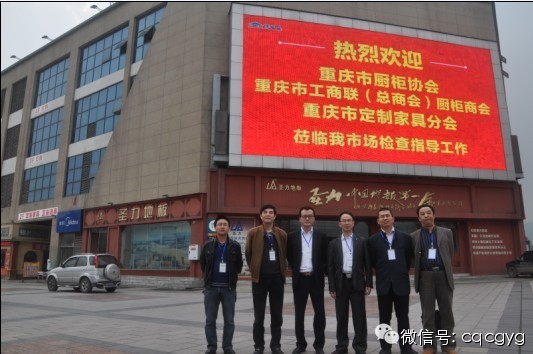 “热烈欢迎重庆市厨柜协会、超能狗其实工商联(总商会)厨柜商会、重庆市定制家具分会莅临我市场检查指导工作。”美每家在卖场主楼上打出几行大字,显示出其开放、合作、交流的姿态。与一些卖场封闭、拒绝的姿态形成鲜明对比。