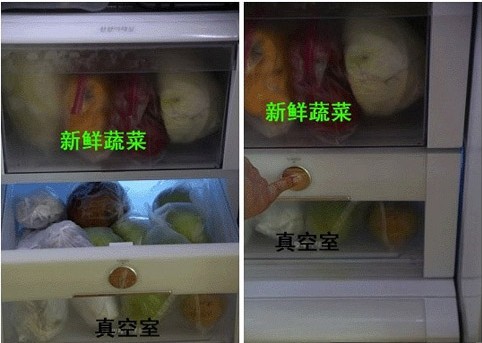 6.现在双开门的冰箱都有真空室。先用塑料袋或者保鲜膜包好水果,然后才放进真空室。