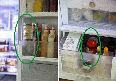 3.一般冰箱设计成门的最上层有个专门放鸡蛋的位置吧?在那里放鸡蛋,又浪费很多空间,因此将鸡蛋放在冰箱内侧的最底层。