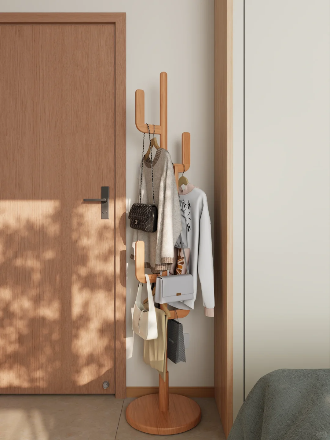 良心推荐:极简款落地衣帽架,相对占用空间更少,实用性很强,衣服、帽子、背包在上面都能轻松找到自己的位置。原木风可以搭配大多数的装修风格,价格也超实惠。
