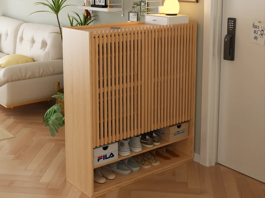 目前市场上的成品鞋柜,款式很多,各式风格都有,价格也更实惠。选购时测量好入户门厅的尺寸,以适合自己家里摆放为准。相比全屋定制的一体玄关柜,成品鞋柜选购起来更便宜,如果后期不喜欢了,更换起来也更方便。