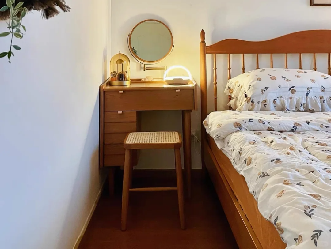梳妆台首要功能是收纳,其次是方便,选购时一定要想好自己的使用场景,比如需要折叠打开的镜子就比较麻烦。如果还想更省钱就选储物、收纳强大的柜子搭配化妆镜使用。