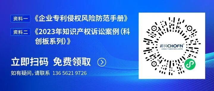 “可领取《企业专利侵权风险防范手册》《企业知识产权风险全景案例集-2023年》精华资料。” 来源:IPRdaily中文网(iprdaily.cn)