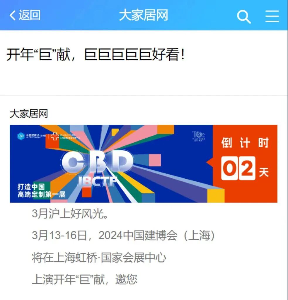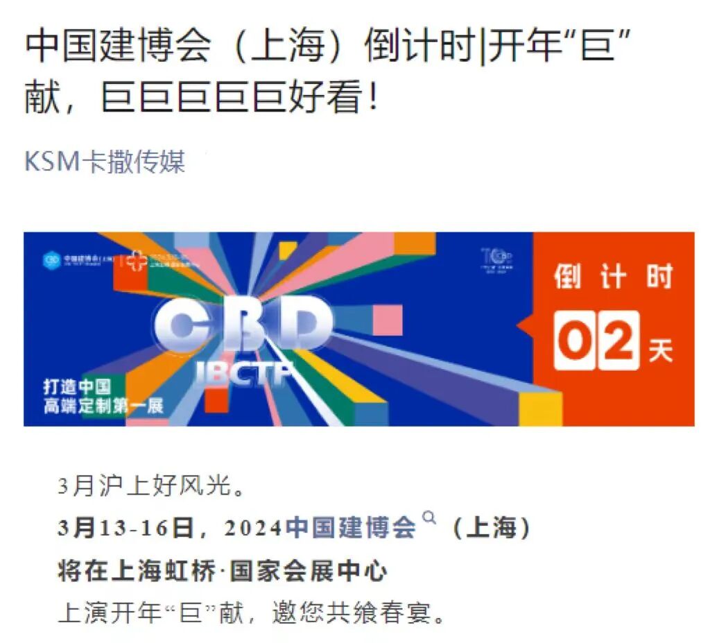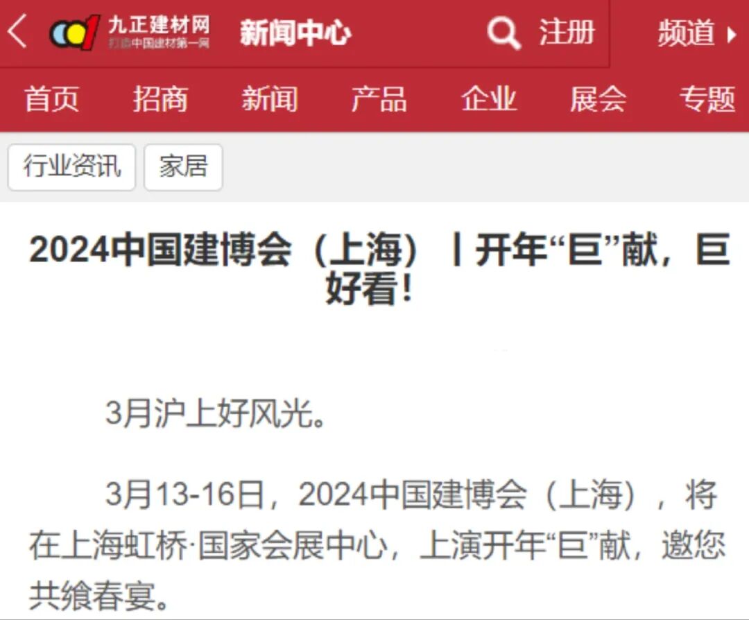 点击上方“北京家居行业协会”可快速关注!3月13日,2024中国建博会(上海)在...