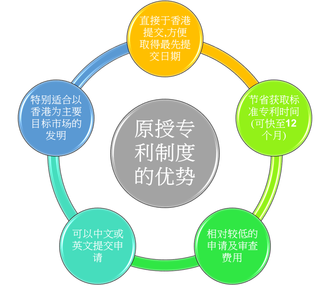 在原授专利制度下,申请人可以直接在香港为其发明申请保护期长达20年的标准专利。申请人除了能方便快捷地取得专利申请的最先提交日期,亦可在适用的情况下节省取得标准专利所需的成本和时间。如香港是相关发明的主要目标市场,申请人尤其适宜利用原授专利制度寻求专利保护。