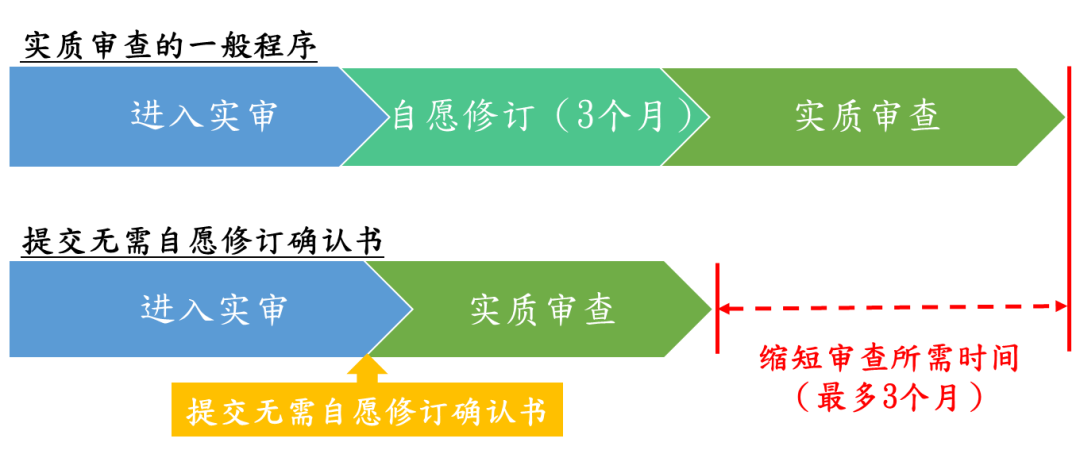 知识产权署在2020年9月实施缩短审查过程所需时间优化措施,申请人可向专利注册处以书面确认无须就其申请作出自愿修订。专利注册处收到书面确认后,会在有关申请进入实质审查阶段后尽快展开实质审查工作,因此可缩减审查所需时间最多三个月。