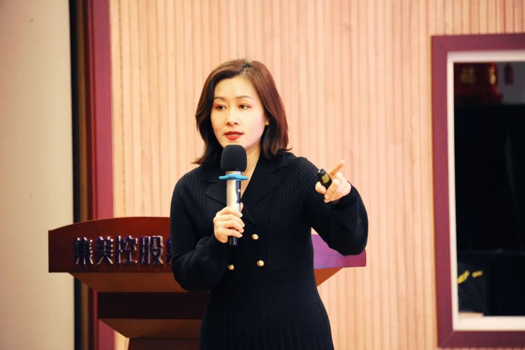 随后,集团企划营销部总监刘敏为大家详细讲解活动并分享推广模式。她说道:"本次活动推广采用海、陆、空立体式持续引爆,全媒体资源扶持品牌持续曝光!只有奔跑起来才能留在原地,希望大家都能动起来,与集美紧密配合,共同迎战315开年大战!"