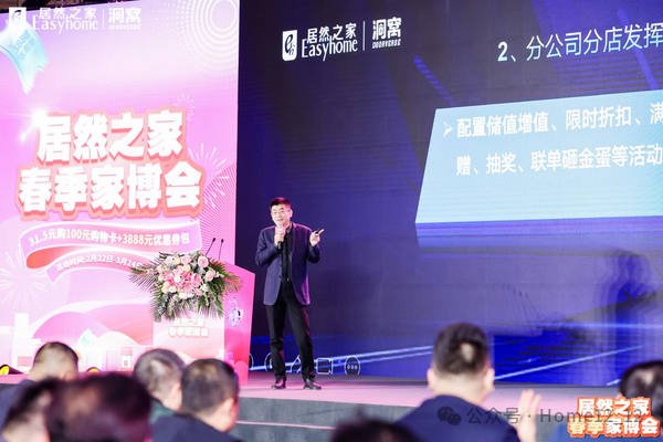 作为全国统一活动,消费者首先可通过购买31.5元春博会大礼包,来享受价值100元的京东或者盒马购物卡,以及全场通用3888元优惠券。活动期内,顾客在“洞窝”平台消费后,周末到店即可领取大礼包,并通过“以旧换新”和“家有困难找居然”两大营销IP在现有的权益基础上将再增加由分店承担的100元的优惠券。
